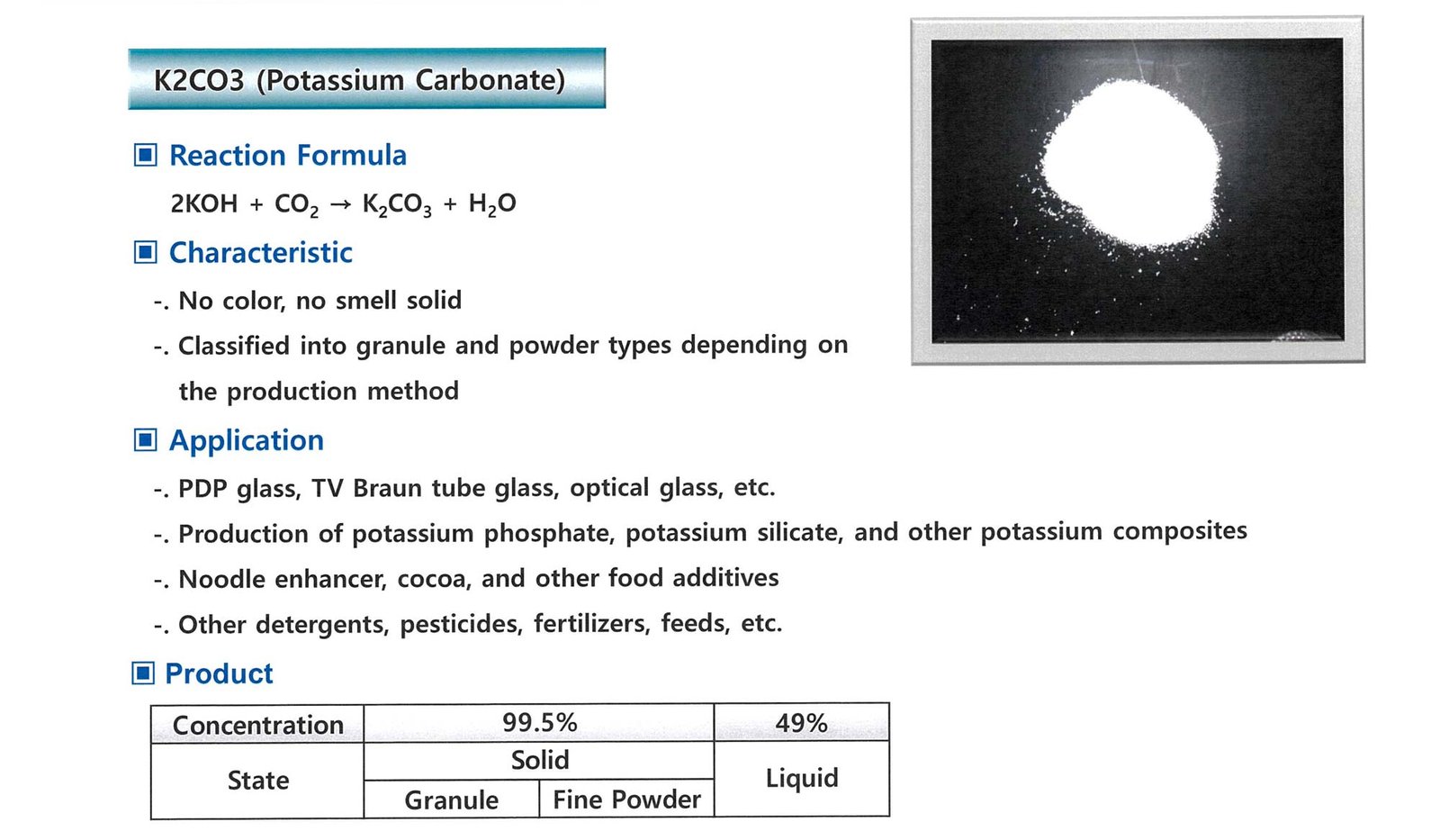 Product Name: Potassium Carbonate – 99.5% (Granular & Powder)